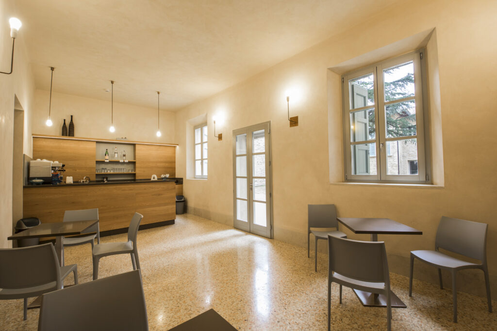 Nei piani superiori sono disponibili per l’accoglienza n.70 posti letto suddivisi in 50 camere tra doppie e singole, complete dei relativi servizi e copertura wifi, raggiungibili mediante ascensori.